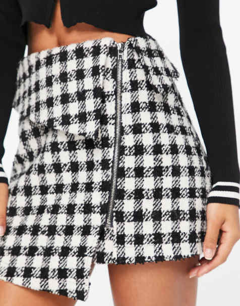Women S Clothing Mini Wrap Skirtbrown Check Mini Etsy